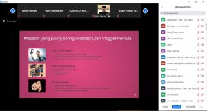 Pelatihan pembuatan vlog dilaksanakan dari tanggal 28 April sampai 6 Mei 2020. Pelatihan dilaksanakan secara online dengan menghadirkan narasumber Muhammad Ikhwan, editor dari salah satu perusahaan televisi swasta yang mempunyai pengalaman lebih dari 7 tahun sebagai video creator. Materi yang disampaikan mulai dari hal mendasar bagaimana cara membuat akun di platform video online hingga teknik editing video sederhana.